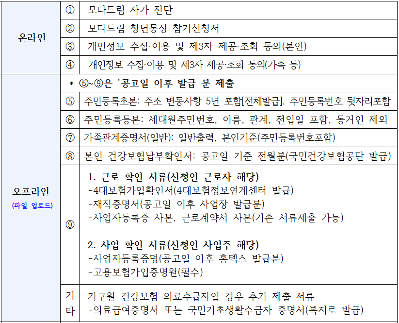 2025년 모다드림 청년통장 지원사업 하반기 신청 제출서류 안내